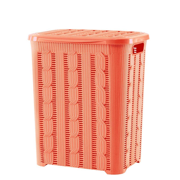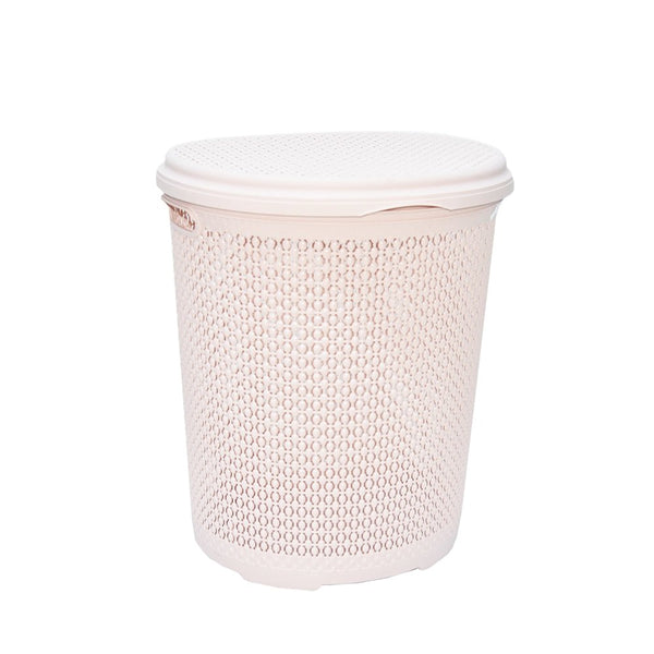 سلة غسيل ملابس بلاستيكية كبيرة مع غطاء ومقابض بلون وردي