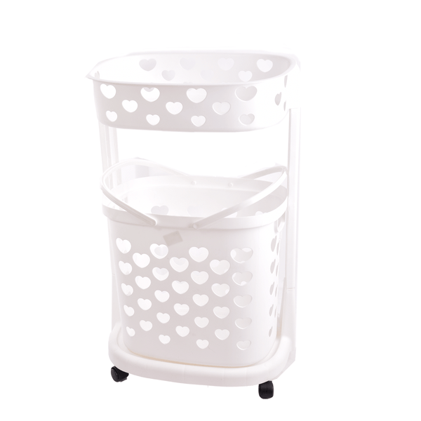 سلة غسيل 2طابق مع عجلات - أنية المنزل