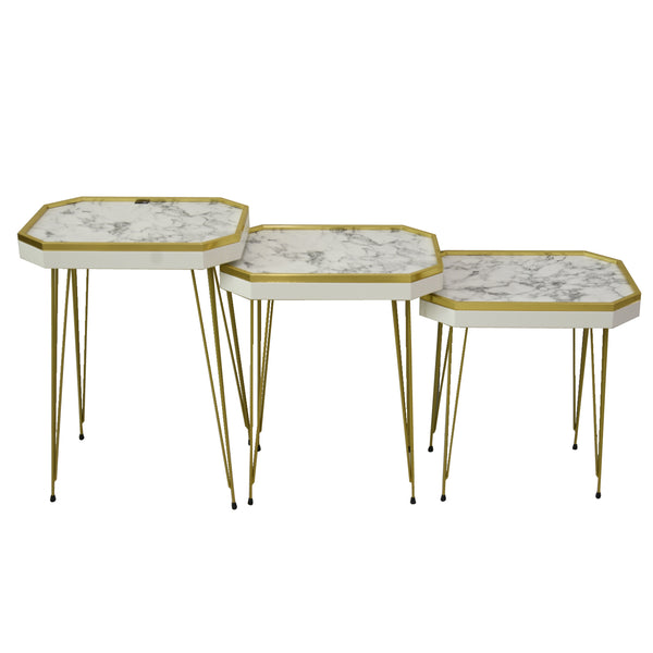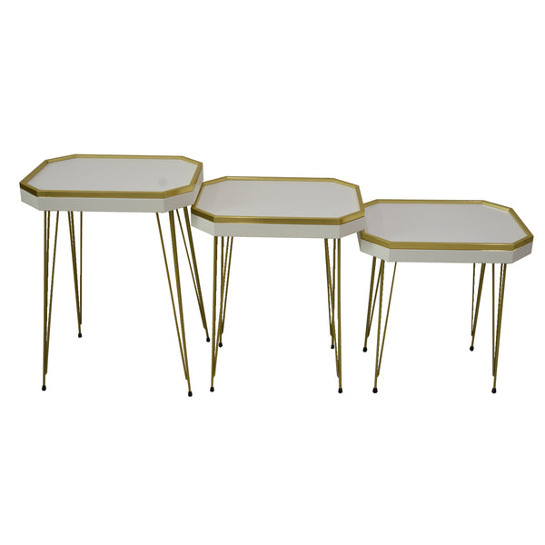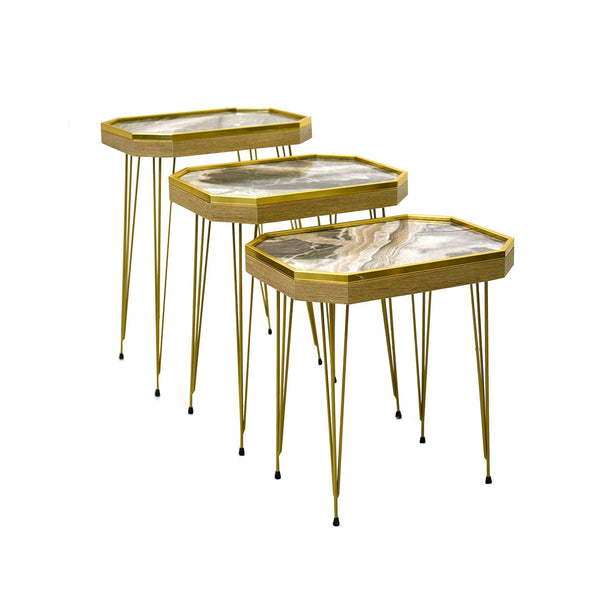 طقم طاولات خدمة وضيافة خشب بارجل معدن 3طع