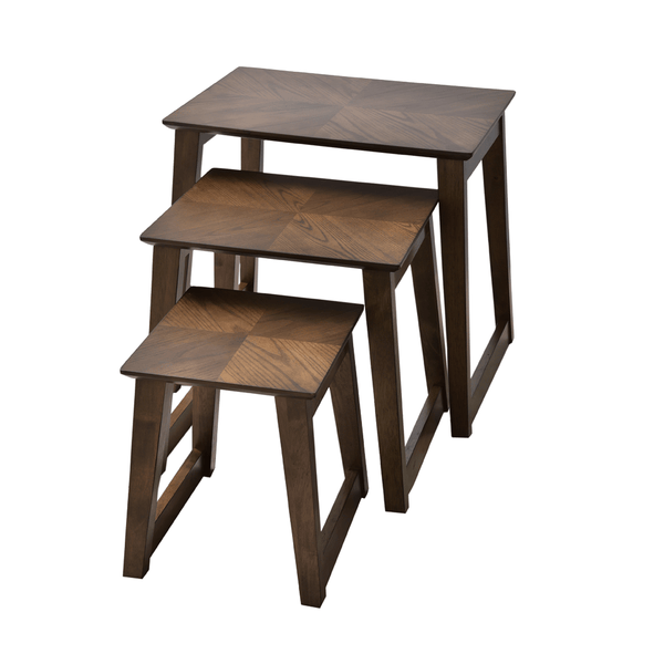 طقم طاولات قهوة خشب 3 قطع لاغنى عن اقتناء هذه الطاولات المتداخلة العملية إلى مستلزماتكِ وأدواتكِ في غرفة المعيشة مصمّمة بطابع مستطيل الشكل جذّاب، وتفاصيل راقية، إضافة إلى نمطها سهل الاستخدام...