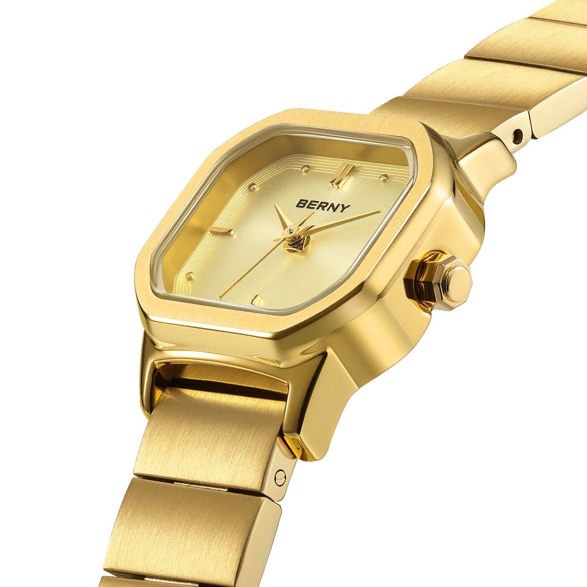 ساعة يد كوارتز مربعة من الستانلس ستيل بالكامل للنساء