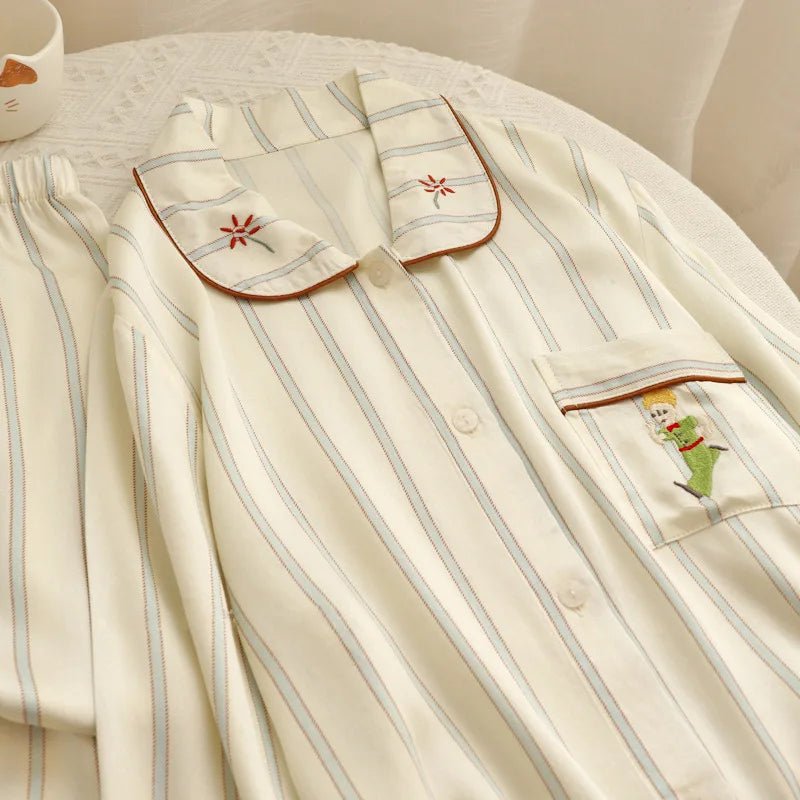 طقم بيجامة نسائية قطنية تصميم لطيف أكمام طويلة وبنطلون