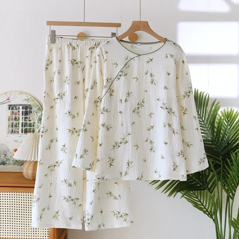 بيجامة كيمونو من الشاش القطني بطبقتين للنساء