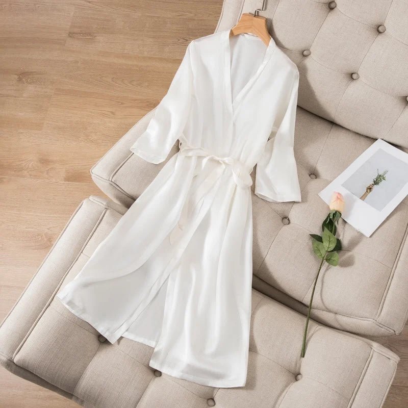 رداء نوم نسائي من الحرير الطبيعي بنسبة 100% بأكمام ثلاثة أرباع