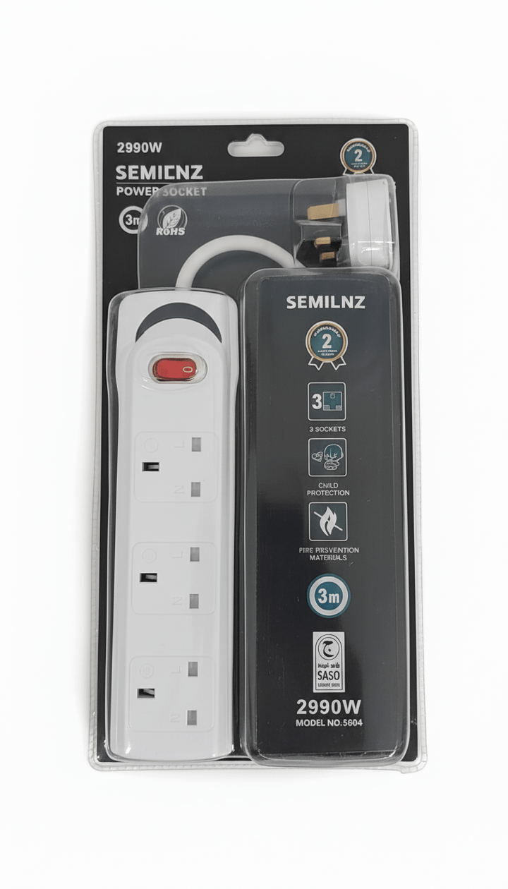 منافذ متعددة: مزودة بـ3 منافذ كهربائية ثلاثية لتوصيل مختلف الأجهزة.