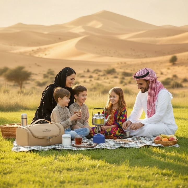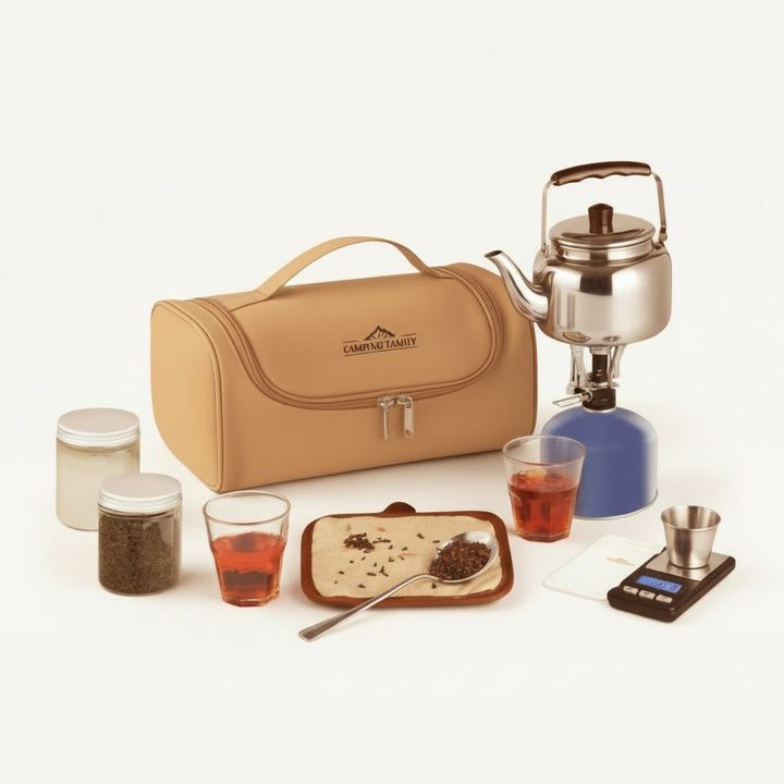 استمتع بتحضير الشاي في البر أو أثناء الرحلات مع طقم عزبة الشاي المتكامل من Camping Family، الذي يجمع كل ما تحتاجه في حقيبة واحدة سهلة الحمل والتنظيم. يأتي الطقم داخل حقيبة متينة بتصميم أنيق ومقسّم داخلي يحافظ على ترتيب الأدوات وحمايتها أثناء التنقل.