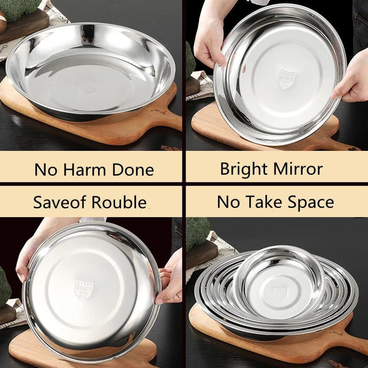 Round plate with raised edge, stainless steel, silver