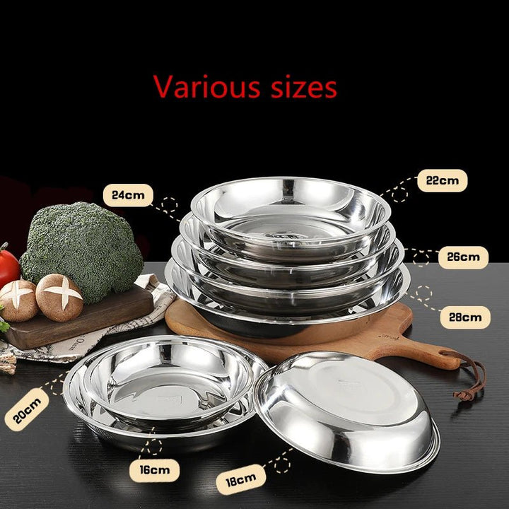 - Round plate with raised edge, stainless steel, silver