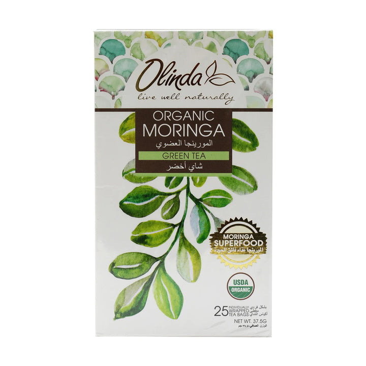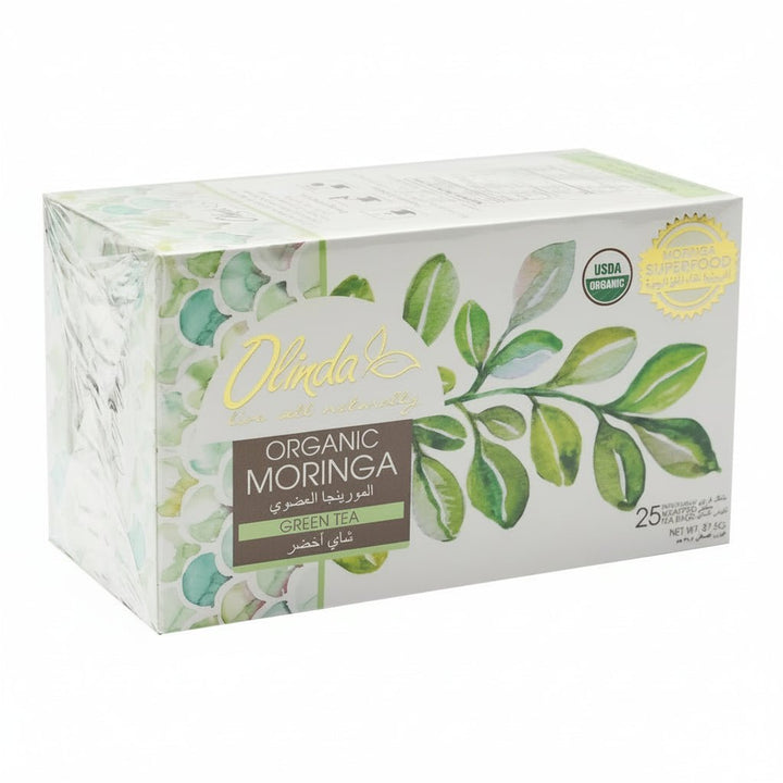 أوليندا شاي المورينجا العضوي مع الشاي الأخضر – 25 كيس شاي | مزيج طبيعي غني بالفوائد