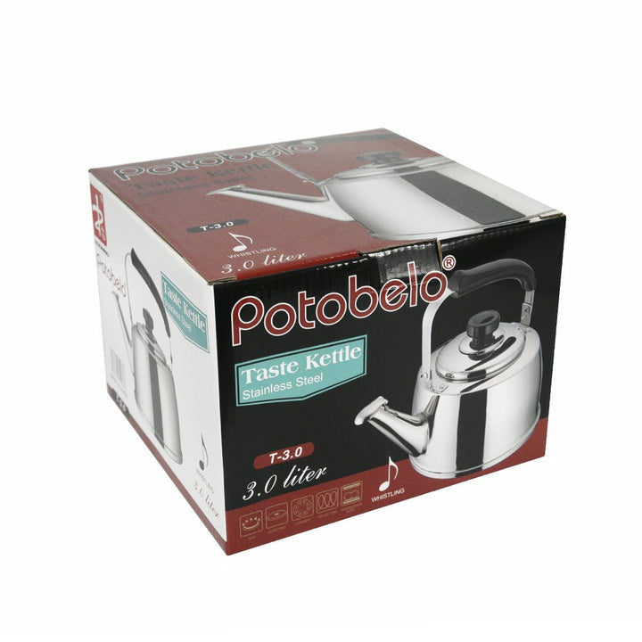 - إبريق شاي ستانلس ستيل بمقبض أسود بسعة 3 لتر