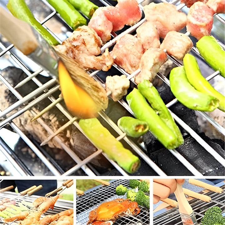 - اسياخ شواء ستانلس ستيل بمقبض خشب 6قطع