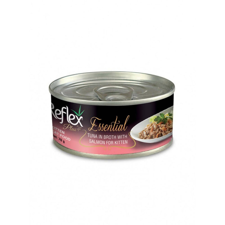 • اكل رفلكس تونة اسياخ في المرق مع السلمون للقطط الصغيرة 70 جم