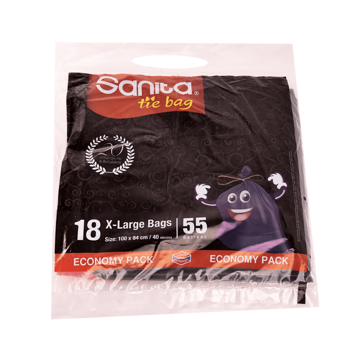 اكياس قمامة سانيتا ابوربطة كبير جداً55جالون18كيس 100*84سم