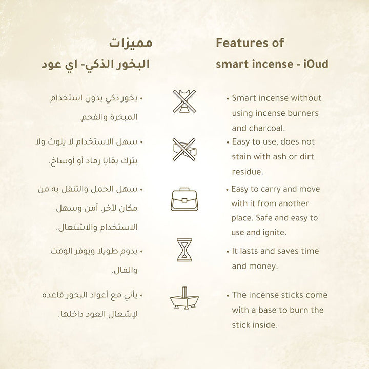 - رائحة مهدئة: يساعد عود البخور الذكي على تقليل التوتر وتحسين التركيز.