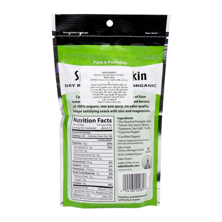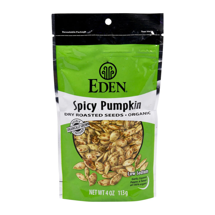 بذور اليقطين العضوية المحمصة بالفلفل الحار والثوم – 113 جم | إيدن
