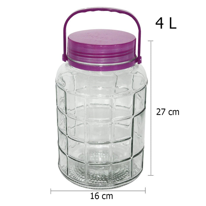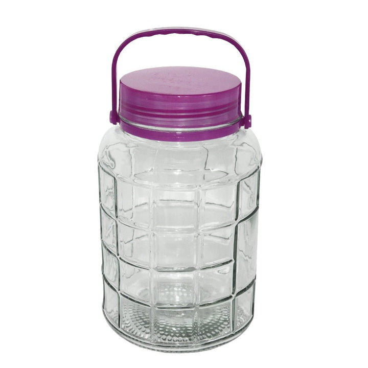 - برطمان تخزين زجاجي شفاف مع غطاء بلاستيكي بلون بنفسجي 4 لتر