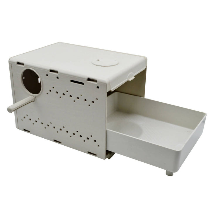 • حضانة طيوربلاستيكية الصنع ، لوضع البيض والإنتاج يمكن التعليق داخل او خارج القفص مع مجثم امامي وباب جانبي