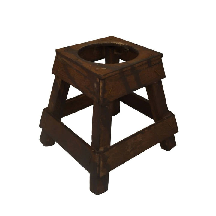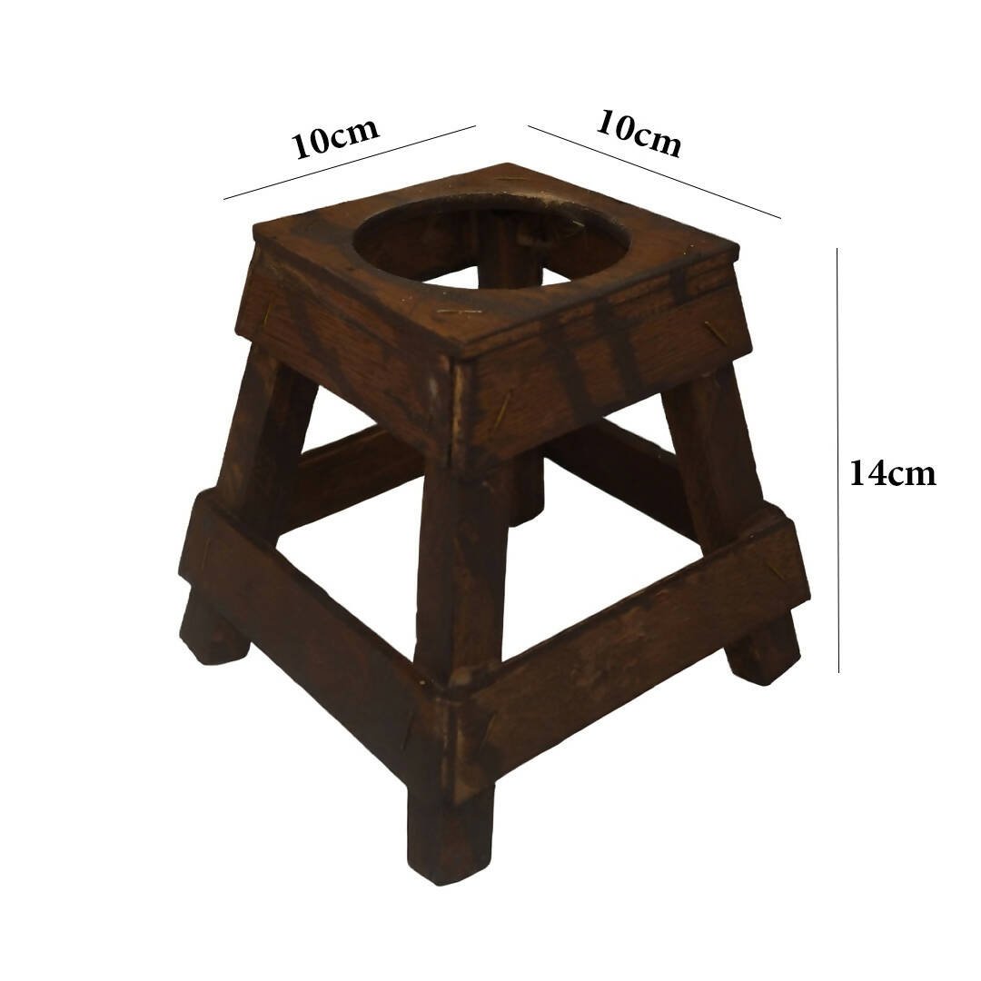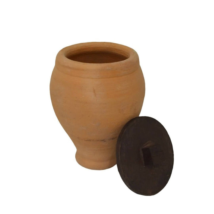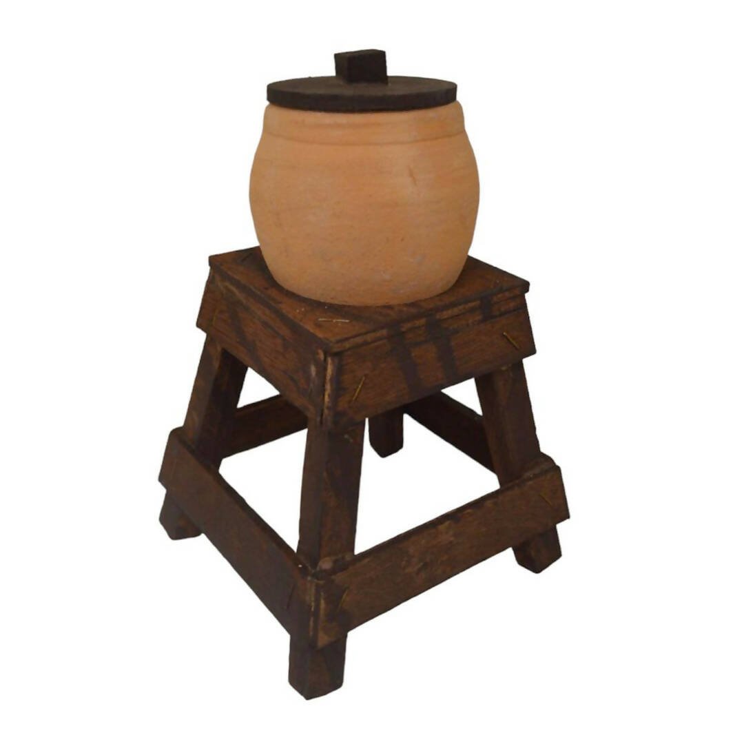 تحفة اثرية من الفخار على شكل زيرماء مع قاعدة من الخشب