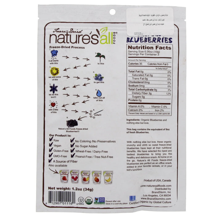 استمتع بمذاق التوت الأزرق الطازج والعضوي من ناتشرز. منتج خالي من الغلوتين، نباتي 100%، ومثالي للوجبات الخفيفة، السلطات، والعصائر الصحية. يحتوي على فوائد طبيعية تساعد في تعزيز صحتك ونشاطك اليومي.
