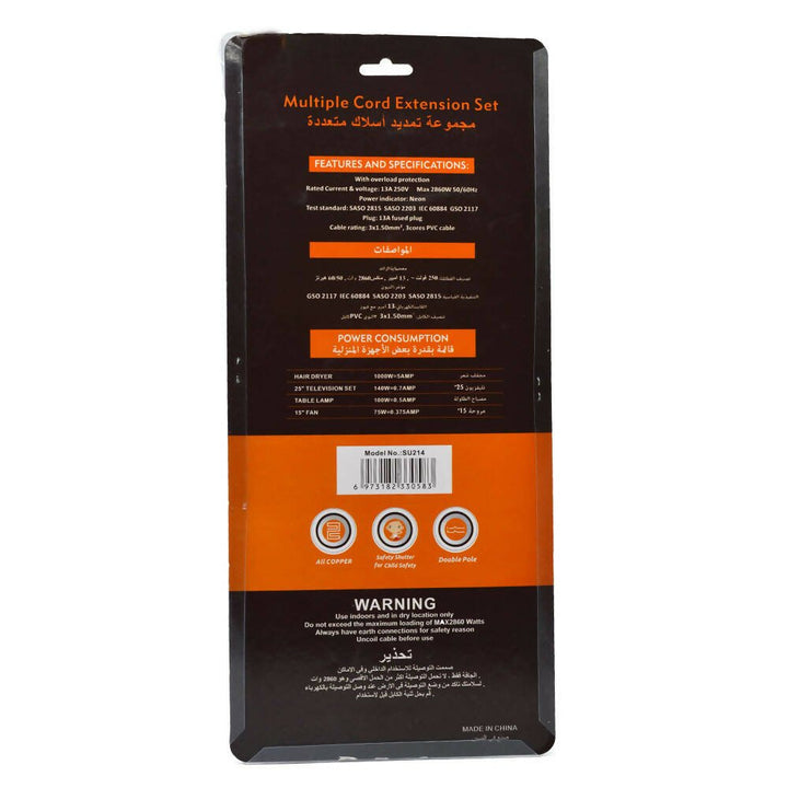 • توصيلة كهربائية 4 مخارج 3متر2500واط
