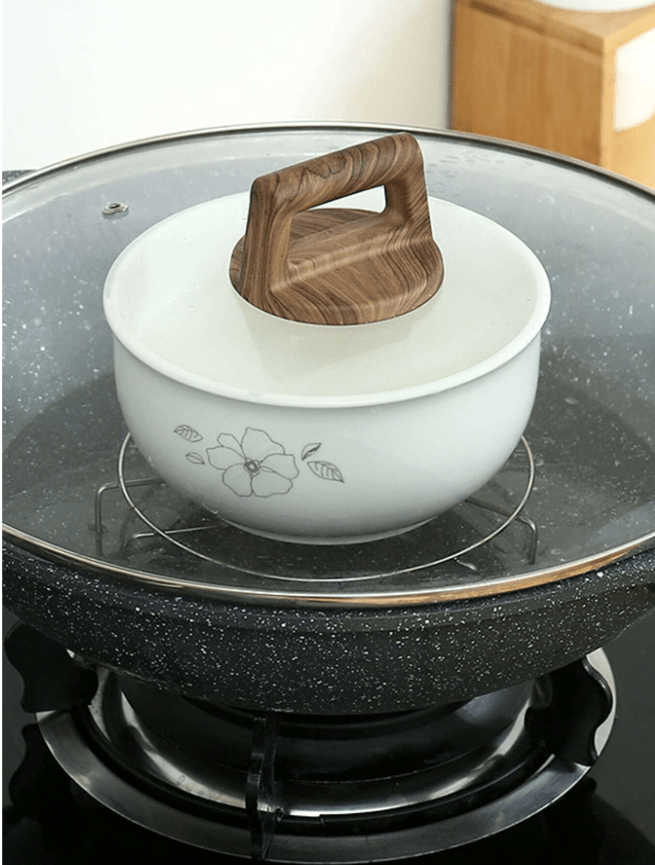 - تصميم دعامة مرتفعة للحفاظ عليه فوق مستوى الماء. يمكنك وضع الكثير من الماء تحتالطعام، مما يتيح وقت طهي أطول على البخار لصنع الطعام بشكل مثالي