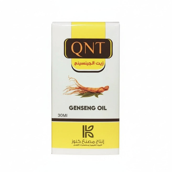 زيت الجينسينج من QNT هو زيت طبيعي عالي الجودة يُستخلص من جذور الجينسينج المعروفة بخصائصها المنشطة والمقوية. يتم إنتاجه في مصنع كنوز للزيوت الطبيعية ومستحضرات التجميل، ويستخدم للعناية بالشعر والبشرة ولتعزيز الحيوية العامة بفضل تركيبته الطبيعية الغنية بالمركبات الفعالة.