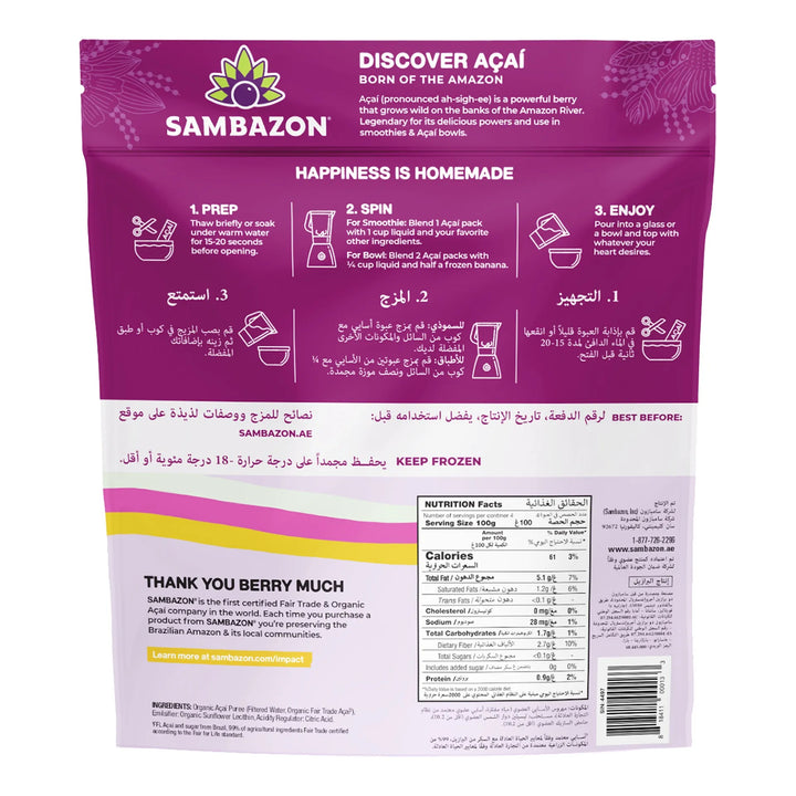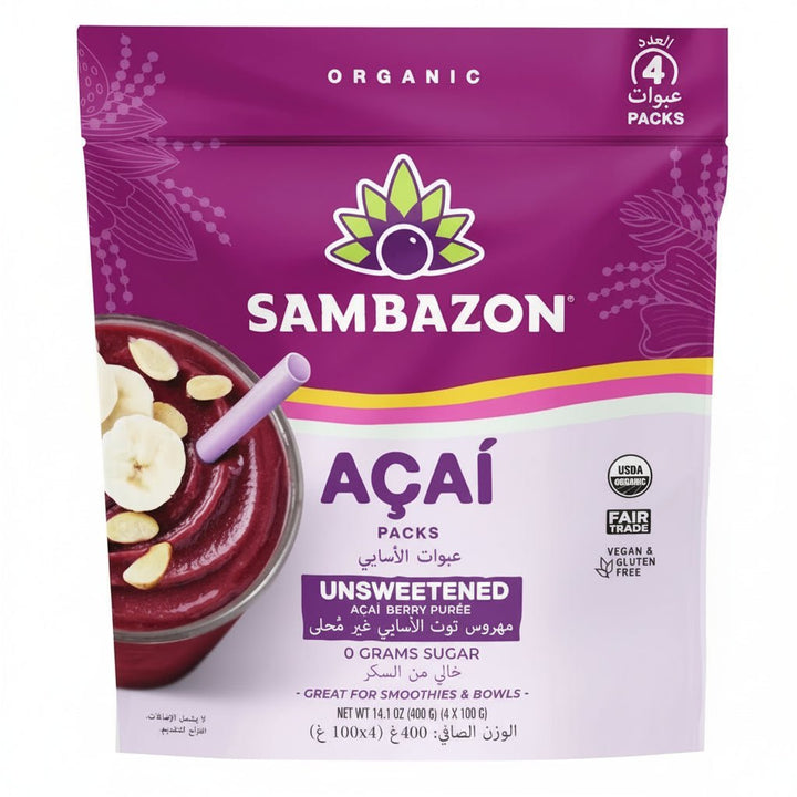استمتع بقوة توت الأساي العضوي مع سامبازون مهروس فاكهة توت الأساي العضوي 400 جم، المنتج المثالي لتحضير أطباق الأساي الصحية والعصائر الطازجة في المنزل.
