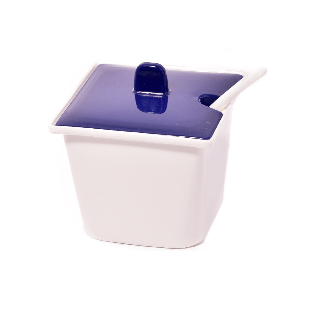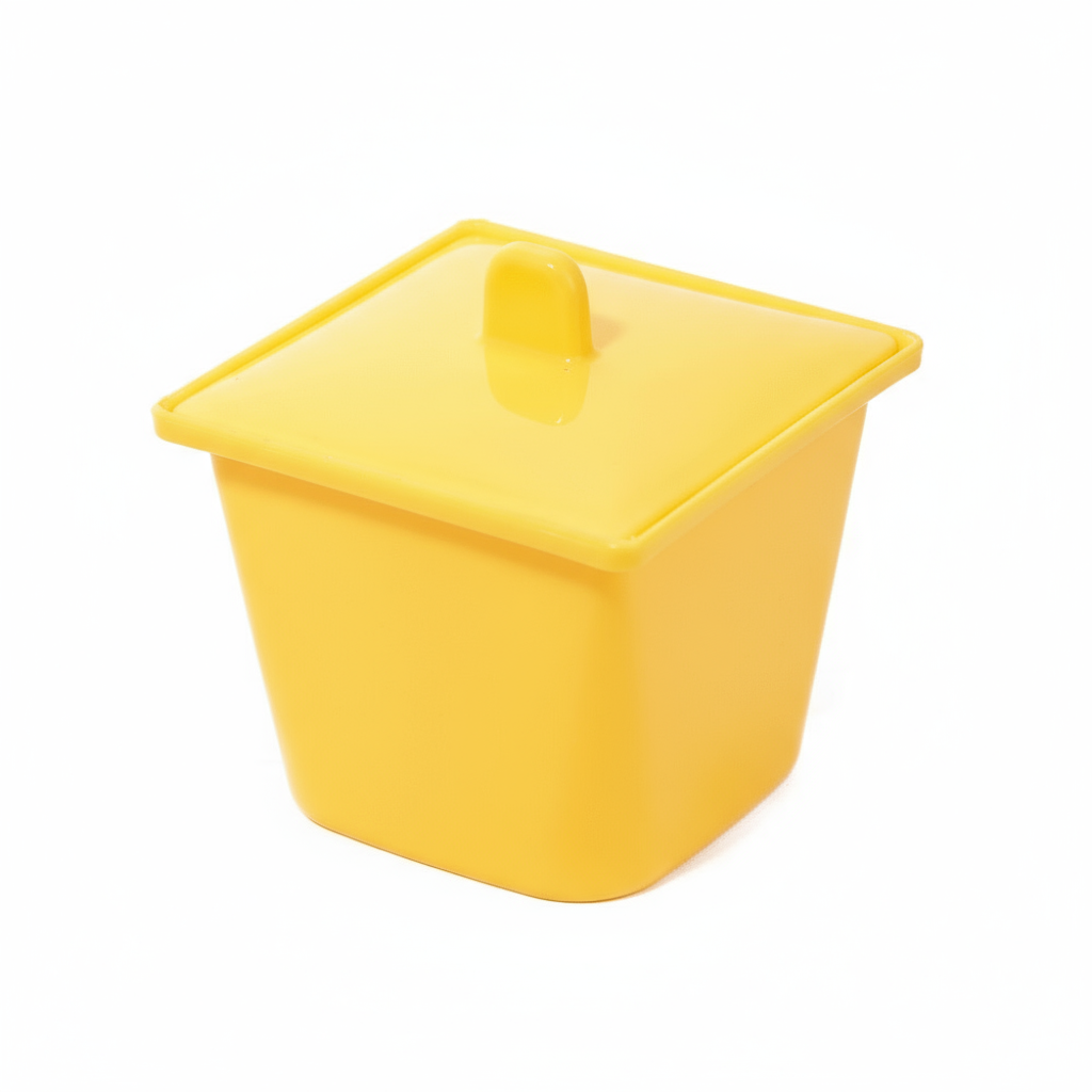 سكرية مع غطاء وملعقه،بلاستيك اصفر