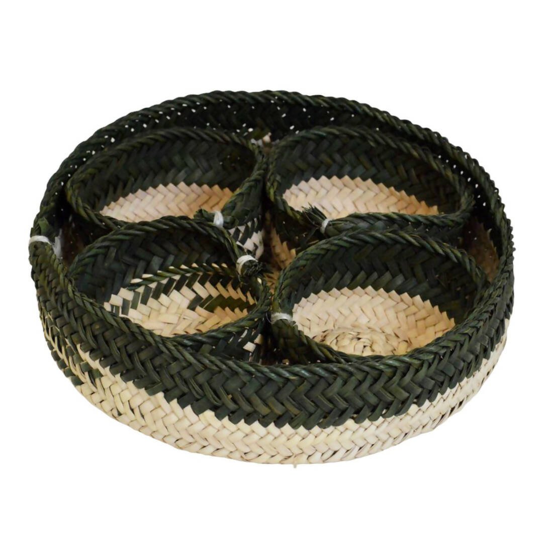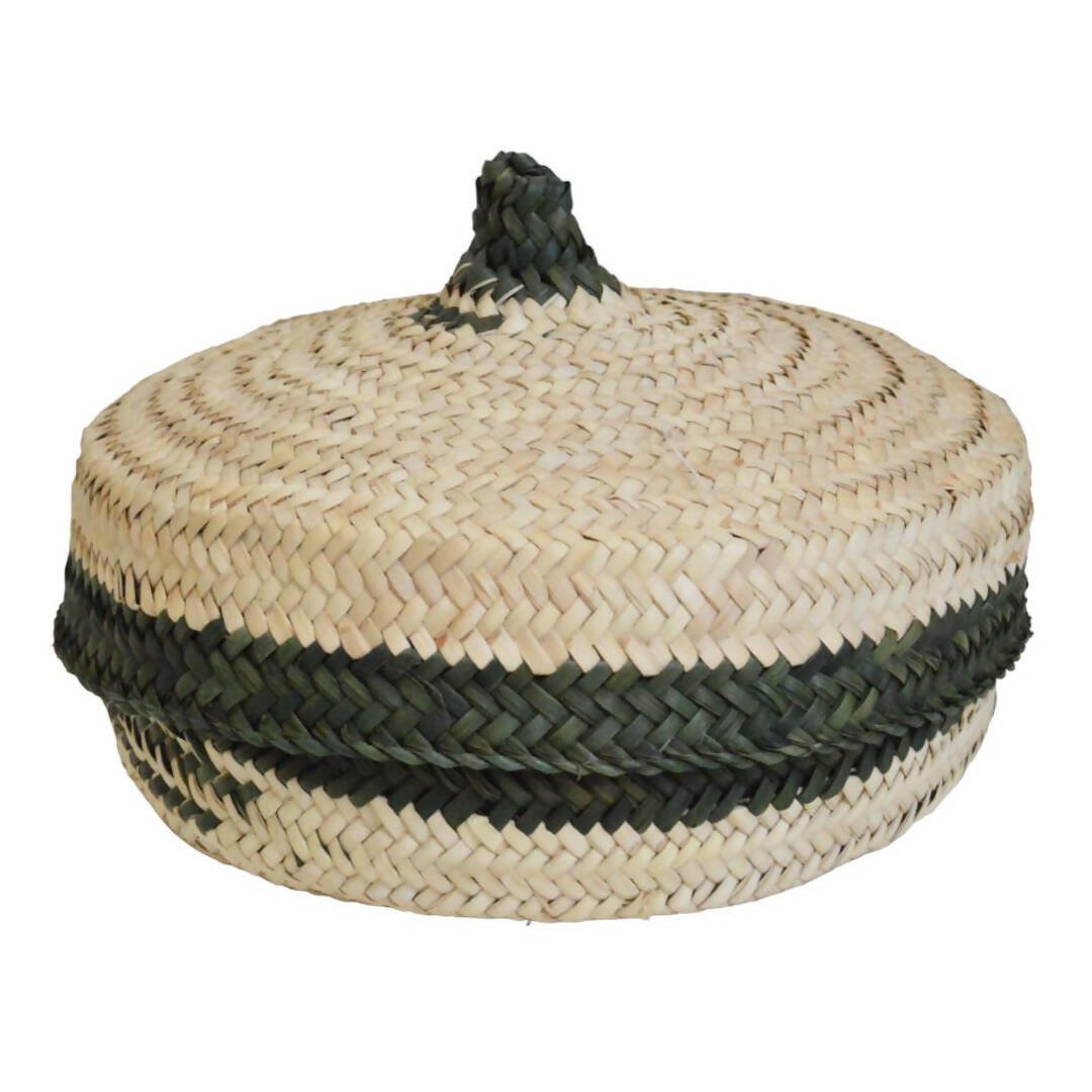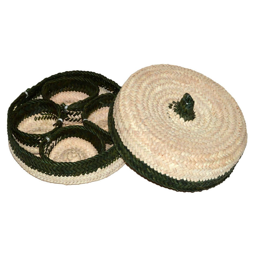 - سلة تقديم خوص تراثية مع اوعية بغطاء