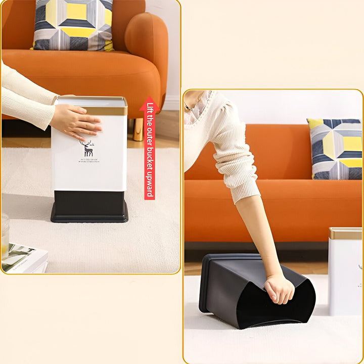 • سلة المهملات ذات الدلو المزدوج مفتوحة من الأعلى، وهي مريحة لرمي الفضلات مباشرة