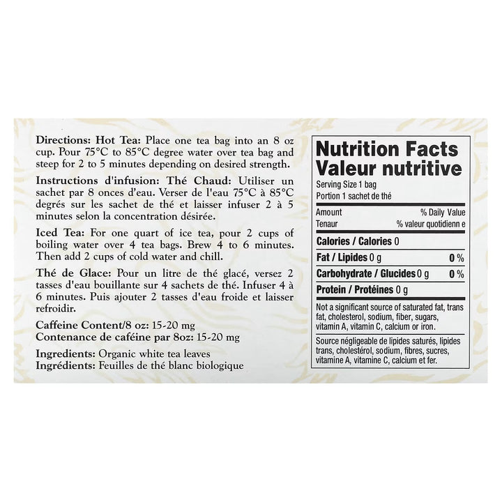 - شاي أبيض عضوي: مصنوع من أجود أوراق الشاي الأبيض العضوي.