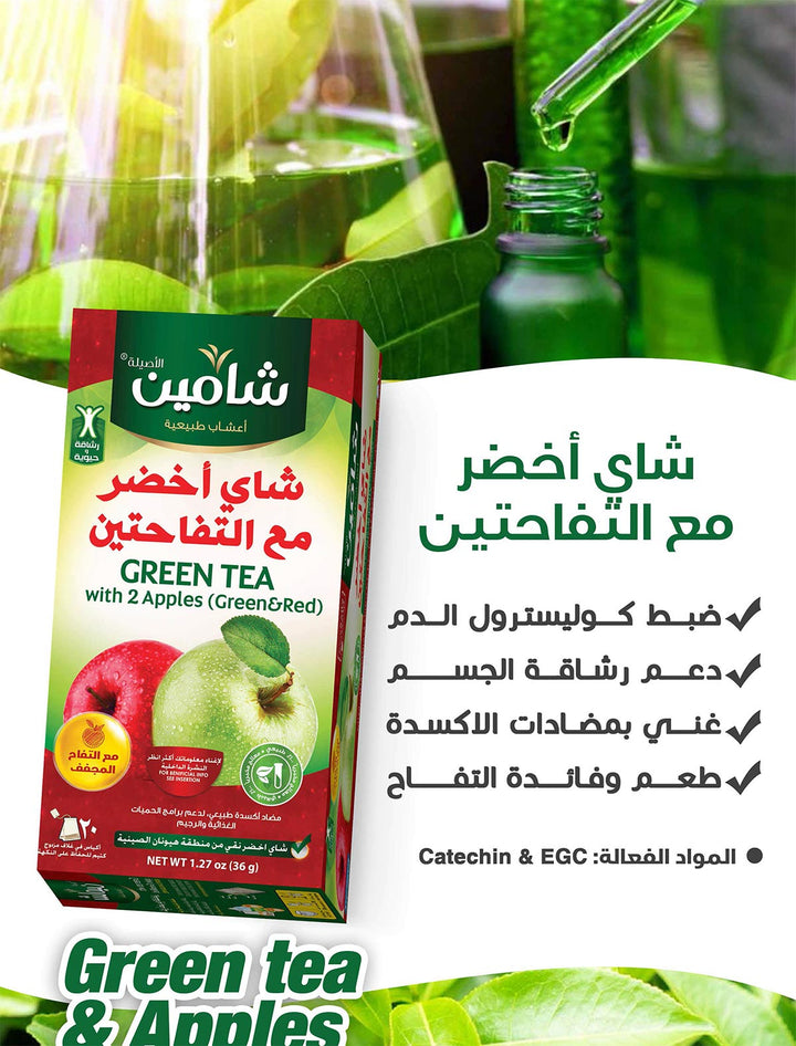 شاي أخضر مع التفاحتين من شامين 20 كيس