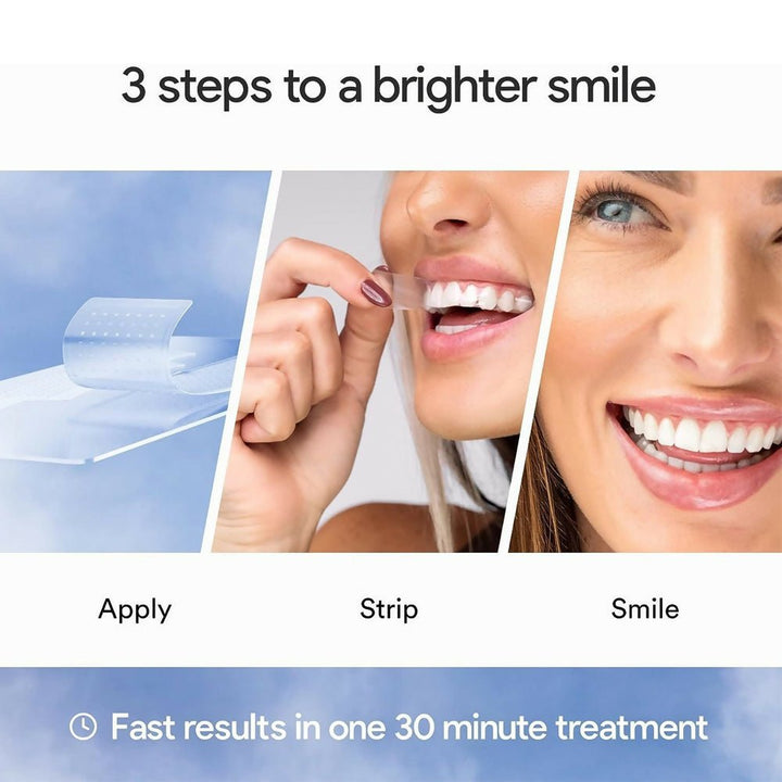 - عند وضعه على أسنانك، يلتصق كل شريط أبيض بقوة بسطح الأسنان ويطلق المكونات النشطة لتركيبة PAP+ في بنية الأسنان لتوفير تبييض سريع