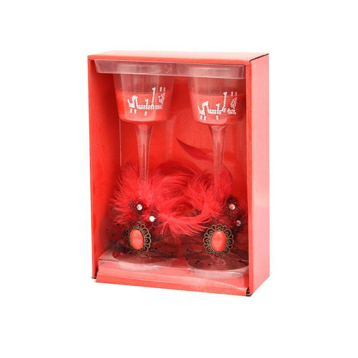 شموع للحفلات لون احمر 25 سم في كؤوس زجاجية - أنية المنزل