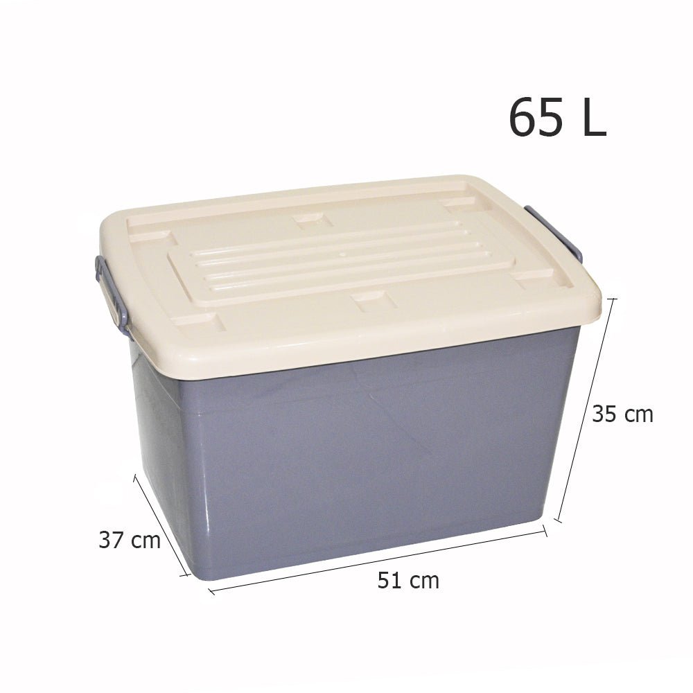 صندوق تخزين بلاستيكي مزود بعجلات ومتعدد الإستعمالات 65 لتر