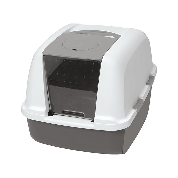 - صندوق فضلات ايرسيفت للقطط بغطاء كبير من كاتيت - رمادي / أبيض