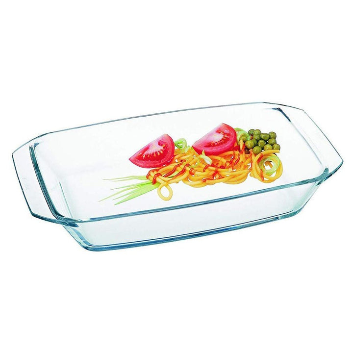 • صينية مستطيلة من الزجاج الشفاف بسعة 1.5 لتر