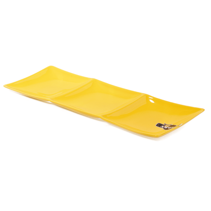 طبق سيراميك اصفر مقسم ثلاث اقسام 39*12سم
