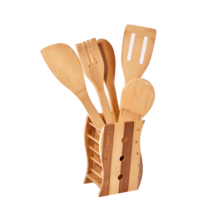 طقم ادوات مائدة من الخيزران مع حامل 5 قطع