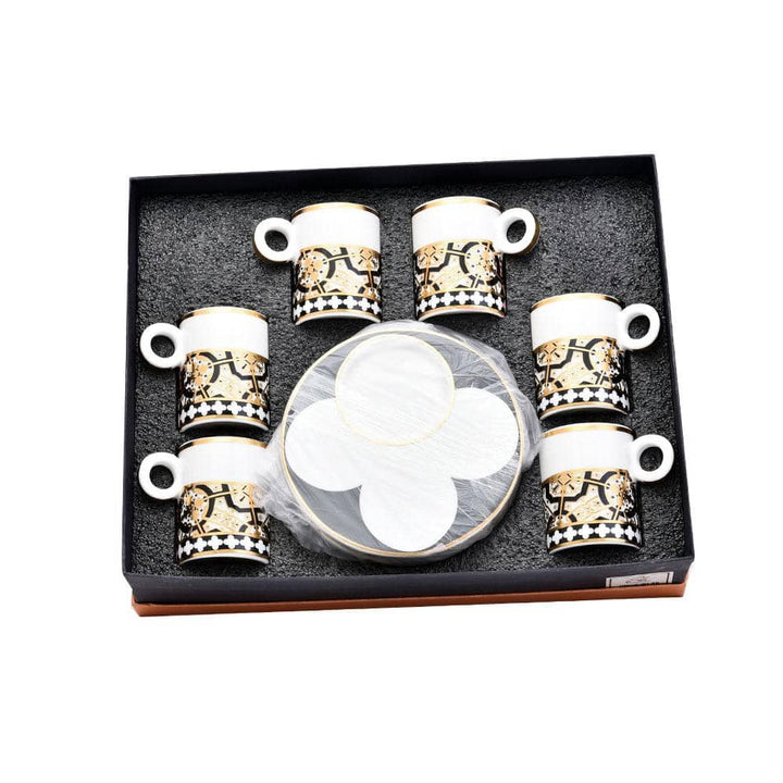 طقم اكواب سيراميك  مع صحون  من الاسطورة 12 قطعة 150مل - أنية المنزل