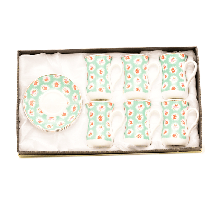 طقم اكواب شاي 6 قطع مع 6 صحون سيراميك - أنية المنزل