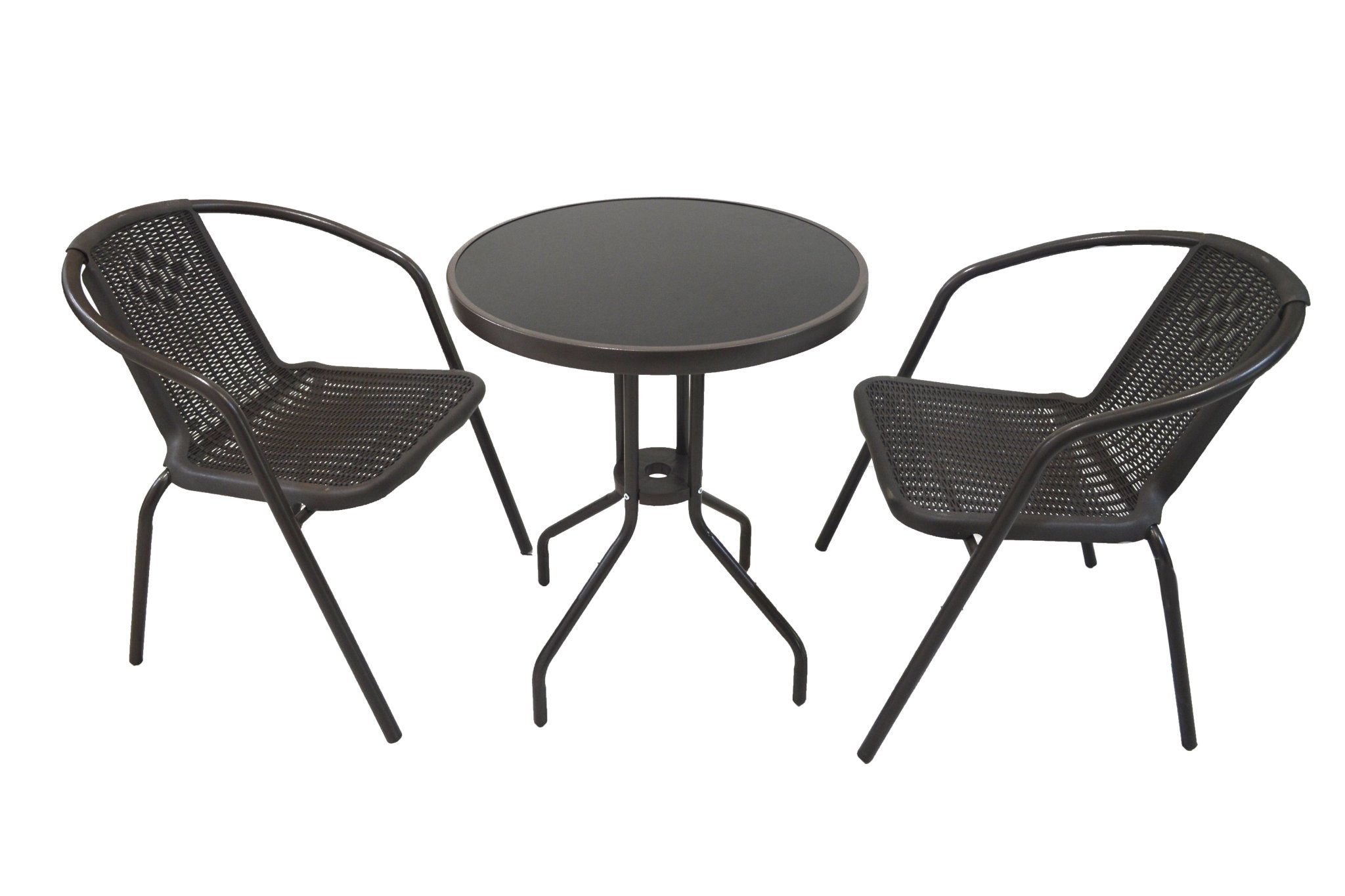 - طقم طاولة مستديرة مع كرسين من الخيزران