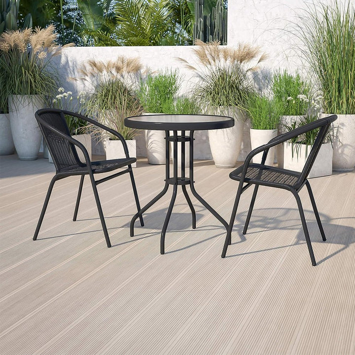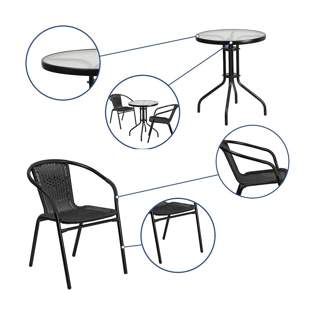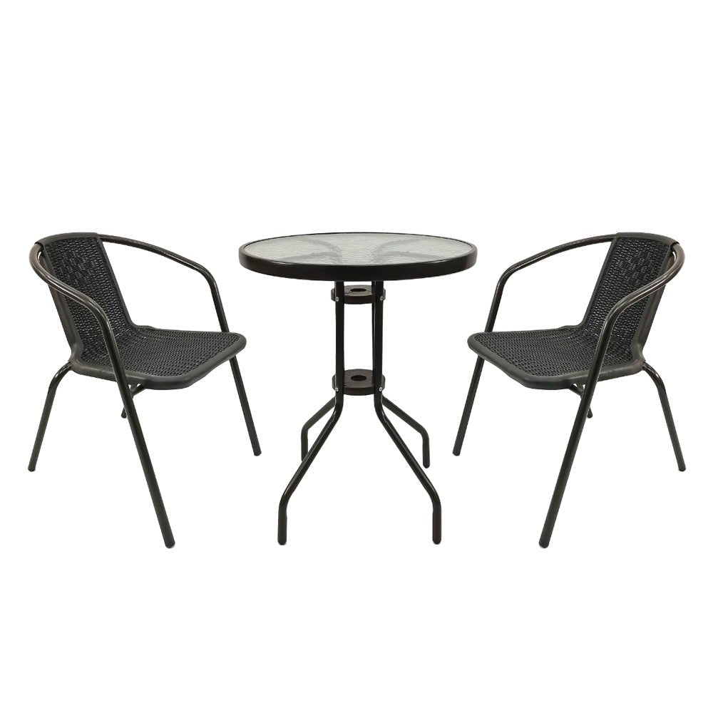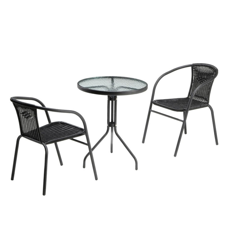 - طقم طاولة مستديرة مع كرسيين مصنوعين من الخيزران عالي الجودة