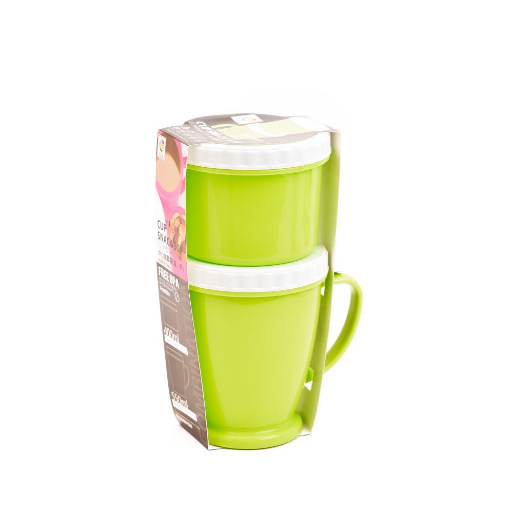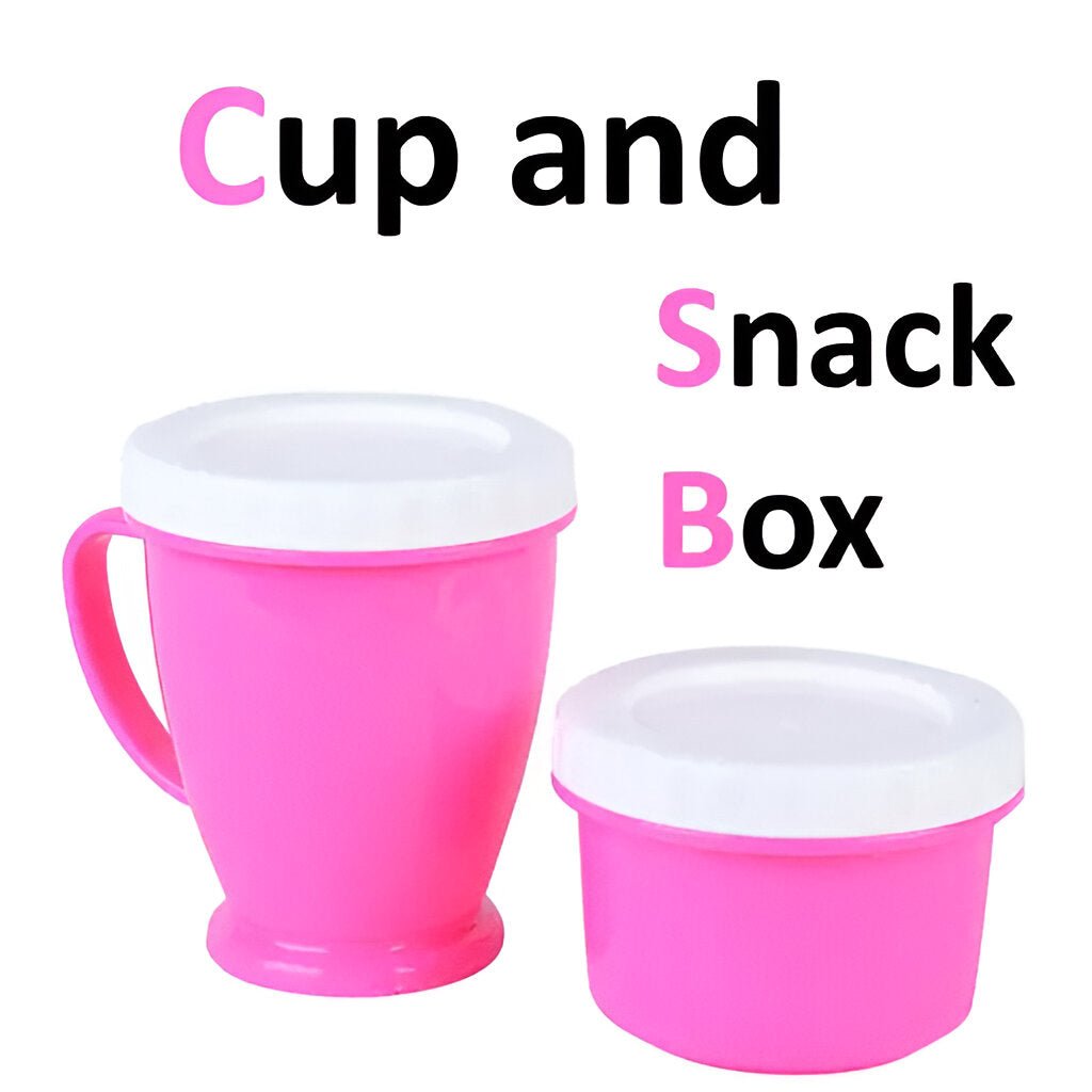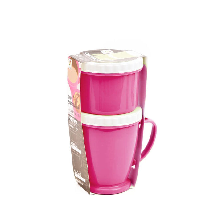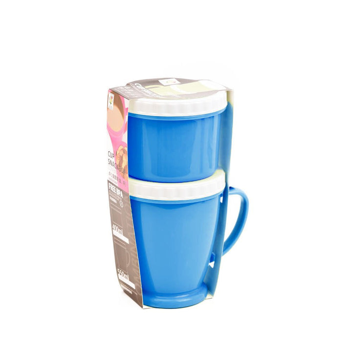 - كوب مع علبة وجبات خفيفة بلاستيك بغطاء