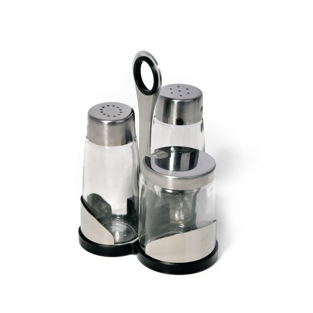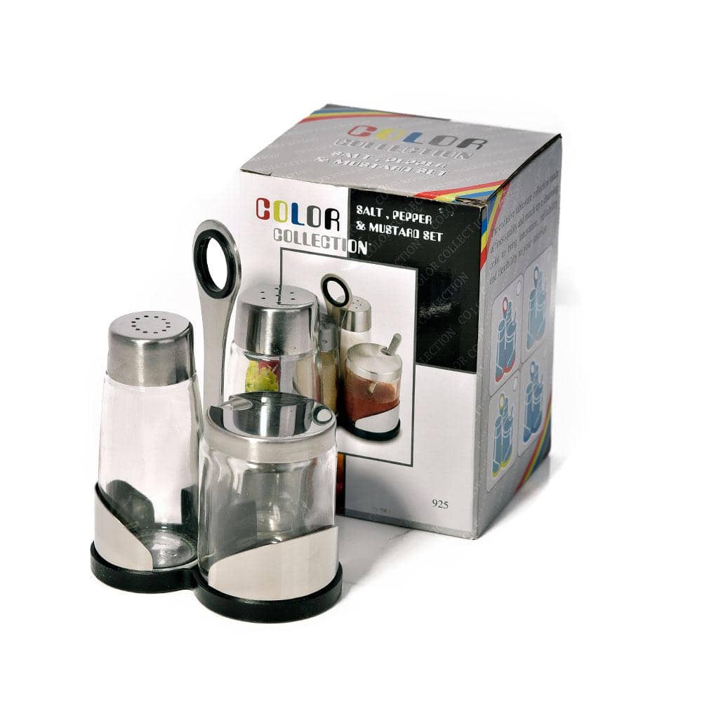 طقم ممالح زجاج 3 قطع مع حامل فولاذ