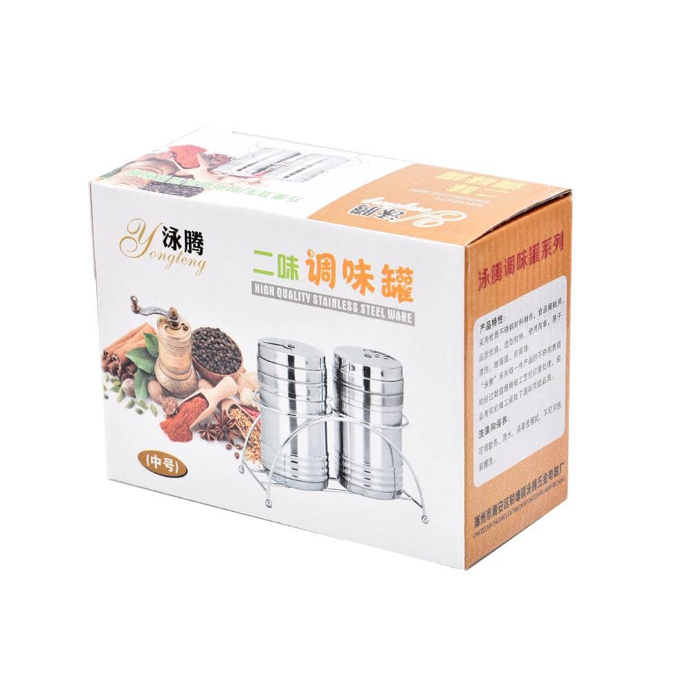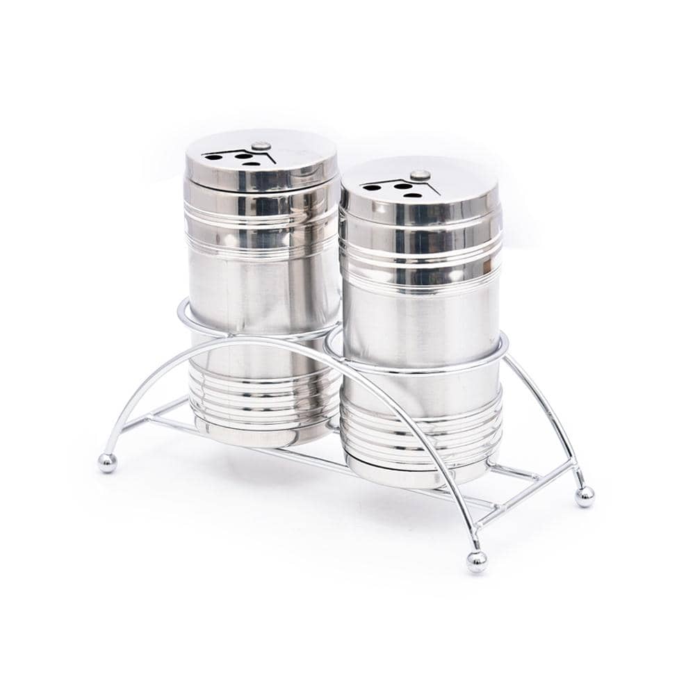 طقم ممالح ستانلس ستيل مقاوم للصدأ قطعتين مع حامل 200 مل