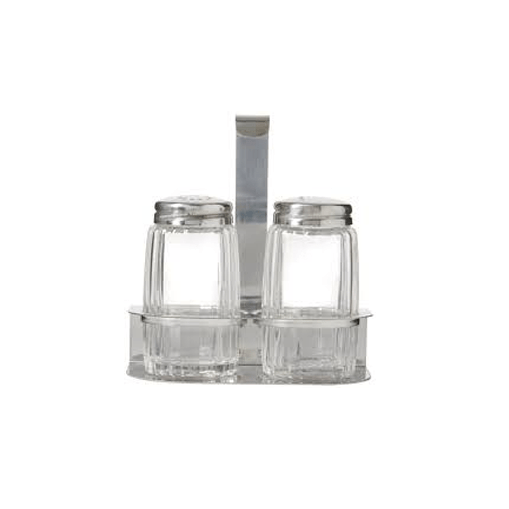عبواة ملح 2 قطع من الزجاج مع حامل ستانلس ستيل
