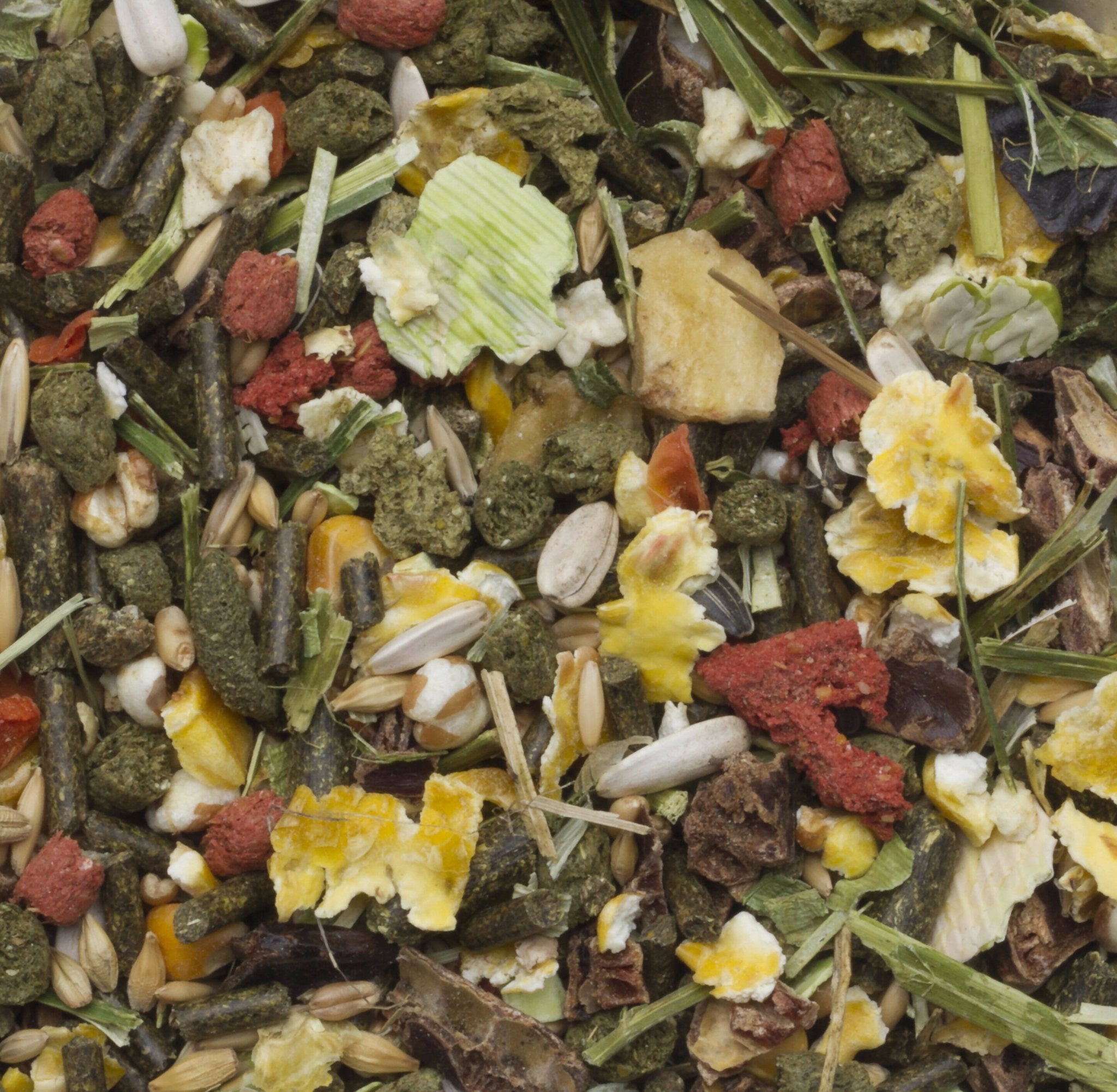 - الحبوب ، المنتجات الثانوية النباتية 37٪ (منها 52٪ البرسيم و 5.5٪ قش البرسيم) ، الخضروات 9.3٪ (منها 55٪ رقائق البازلاء ، 20٪ الترمس ، 16٪ الجزر ، 5٪ الكراث و 4٪ البازلاء) ، فواكه 7 5٪ (منها 90٪ خروب ، 6٪ موز و 4٪ تفاح) ، بذور ، معادن ، زيوت ودهون