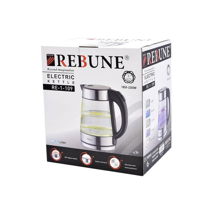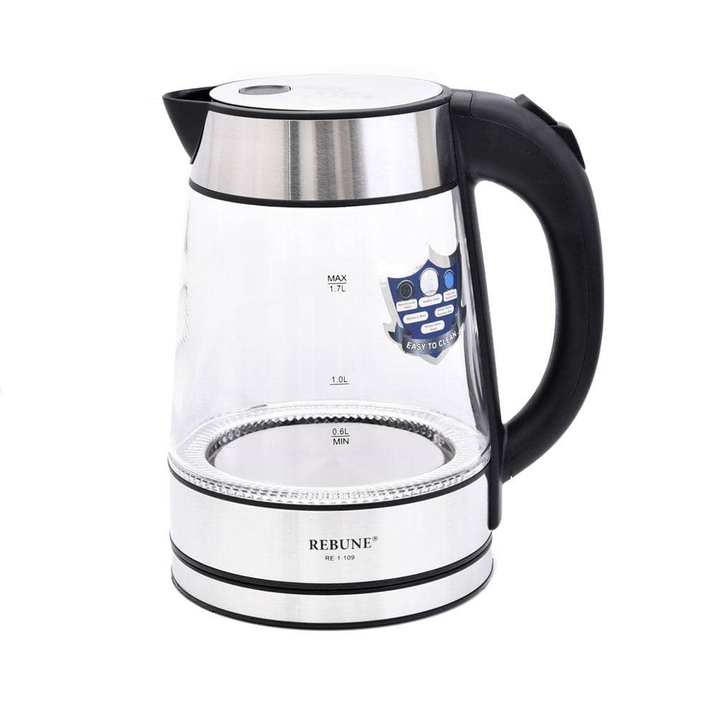 غلاية كهربائية مقاومة للحرارة من ريبون سعة 1.7 لتر شفاف 2200واط