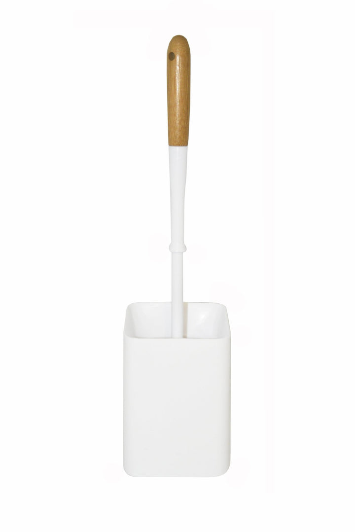 - فرشاة تنظيف المرحاض مع حامل بلاستيكي بلون أبيض